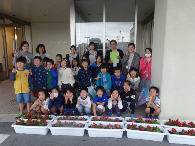中城南小学校2年生の子どもたちからお花のプレゼントがありました!