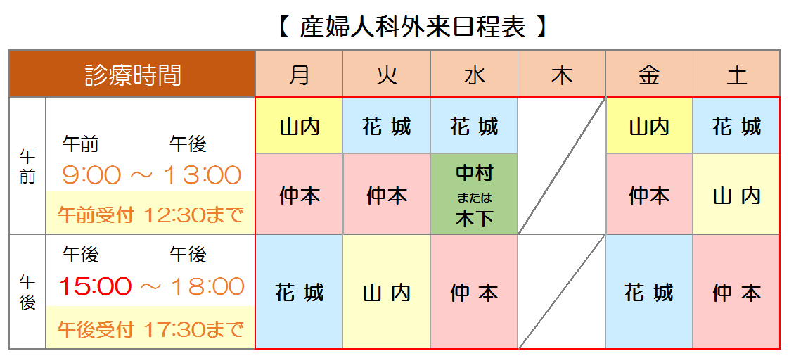 産科外来診療スケジュール変更のお知らせ