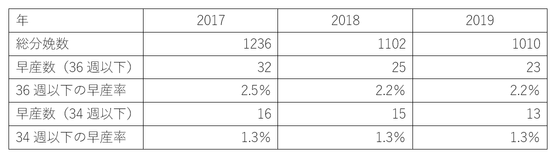 その結果、次第に早産数が減少してきています。今後も現在の治療成績を推進し続けることを病院職員全員で取り組んでいく所存です